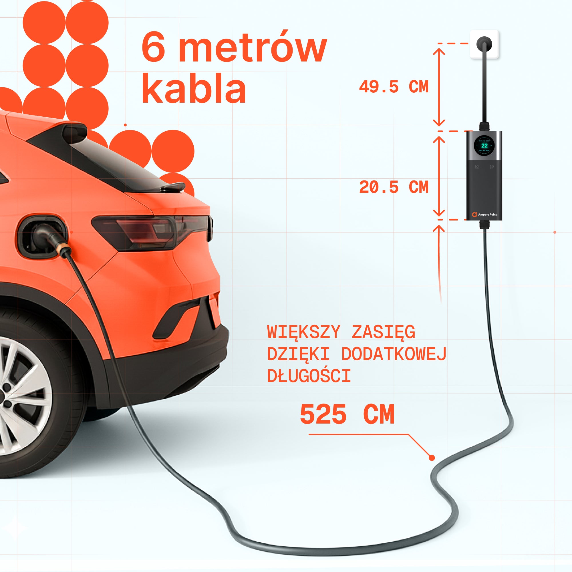 ⚡Przewód 6 metrów – wygodne ładowanie z większym zasięgiem
