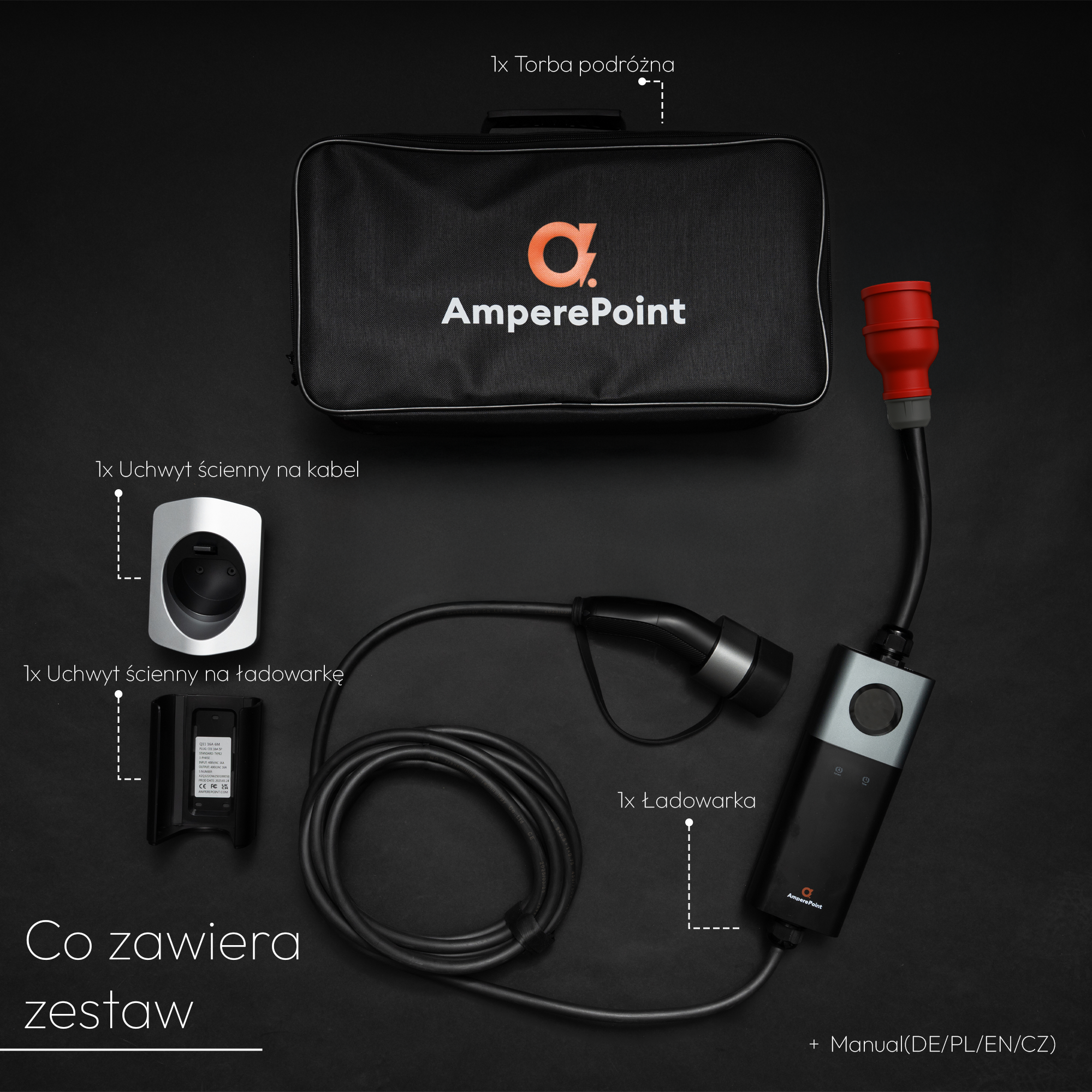 W zestawie z ładowarką znajduje się uchwyt ścienny na kabel oraz uchwyt na samo urządzenie, co umożliwia wygodny montaż na ścianie. To rozwiązanie nie tylko oszczędza miejsce, ale także pomaga utrzymać porządek i estetykę w garażu, na podjeździe czy w miejscu pracy. Dzięki temu ładowarka jest zawsze pod ręką i gotowa do użycia, a przewody pozostają schludnie uporządkowane i nie leżą na ziemi.