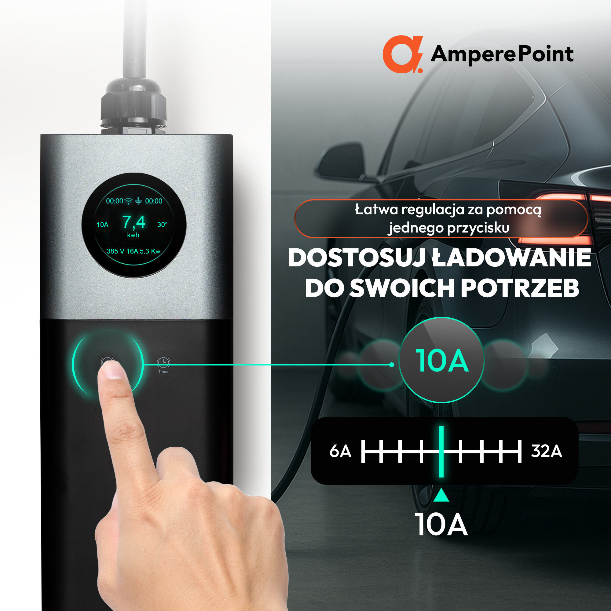 ☑️ Funkcje smart – możliwość regulacji mocy ładowania (6–32A – zmiana co 1A) oraz ustawienie harmonogramu ładowania w celu optymalizacji zużycia energii w tańszych godzinach. Ładowarka zapamiętuje ostatnio używane ustawienie natężenia prądu (w amperach).