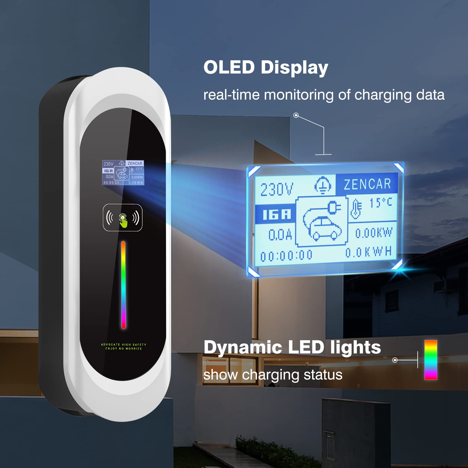 Ładowarka wyposażona jest w wyświetlacz napięcia, amperażu, czasu ładowania, ilości pobranej energii i ew. błędów. W każdym momencie możesz sprawdzić status ładowania. Standard wykończenia i szczelności IP66 zapewnia jej kompletną wodoodporność i bezpieczeństwo podczas użytkowania!!! Możesz ładować nawet w czasie deszczu i śniegu.